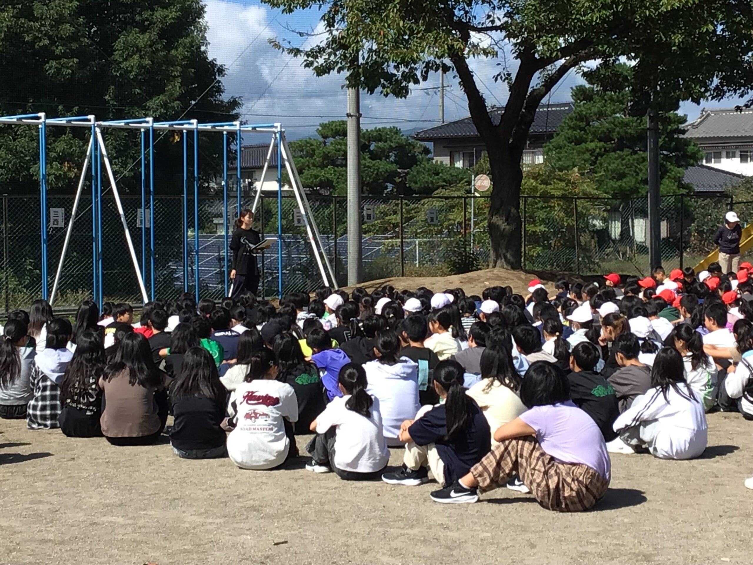 10月6日(月)に予告なしの休み時間の避難訓練を実施しました。10時45分非常ベルが鳴り、子ども達は近くの避難場所に集まってきます。1番上の学年がリーダーシップを取り、下級生を並べたり静かにさせたりして、訓練ができました。予告なしでしたが、子ども達は落ち着いて集合し、避難することができました。