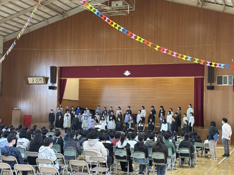 まずは、4年生の子どもたちから、一年間頑張ったことや、来年度頑張りたいことなどの発表がありました。一年間の自分の取り組みを振り返り、それをどう来年度につなげていくかをよく考えていて素晴らしかったです。また、合唱部の発表もあり、一年間の活動のまとめにふさわしい、素敵な歌声を体育館に響かせました。