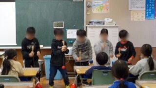 2年生が、「とめけん」や「もしかめ」など、自分が出来るようになった技を1年生の前で発表するけん玉交流会がありました。技を披露するだけでなく、うまくいくためのコツも伝え、その後、一緒にけん玉を楽しみました。教え方が上手な子が多く、短い時間でし...