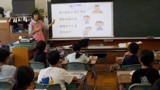 9月19日(金)に給食センターから栄養教諭の先生が来て、食育の授業をしてくださいました。2年生は、「食事のマナー」をテーマに、箸の持ち方や茶碗の持ち方、食べるときの姿勢について教えてもらいました。姿勢について考える場面では、風船を胃に見立て...